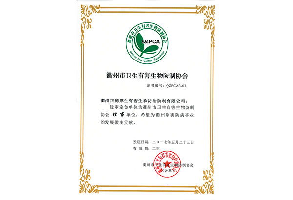 浙江德宜居環(huán)境科技有限公司現(xiàn)為浙江省除四害科技協(xié)會(huì)A級(jí)資質(zhì),同時(shí)也是浙江省除四害科技協(xié)會(huì)會(huì)員單位、中國(guó)有害生物防制協(xié)會(huì)會(huì)員單位,是國(guó)內(nèi)專(zhuān)業(yè)從事蟲(chóng)害控制管理(PMP)技術(shù)與理念的專(zhuān)業(yè)蟲(chóng)害管理公司之一。
