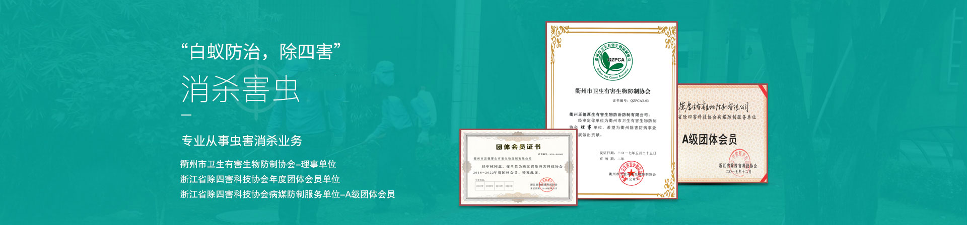 浙江德宜居環(huán)境科技有限公司現(xiàn)為浙江省除四害科技協(xié)會(huì)A級(jí)資質(zhì),同時(shí)也是浙江省除四害科技協(xié)會(huì)會(huì)員單位、中國(guó)有害生物防制協(xié)會(huì)會(huì)員單位,是國(guó)內(nèi)專業(yè)從事蟲(chóng)害控制管理(PMP)技術(shù)與理念的專業(yè)蟲(chóng)害管理公司之一。